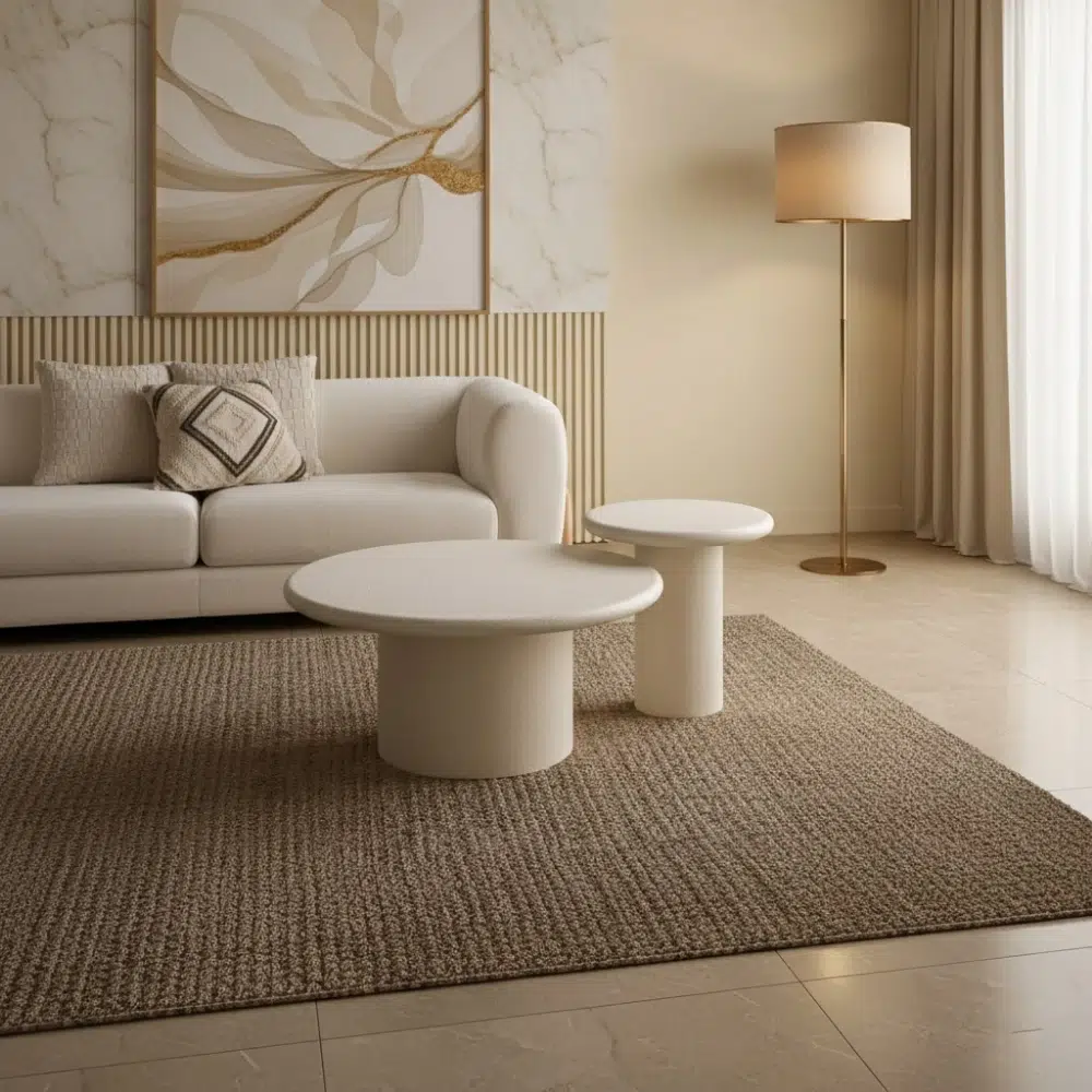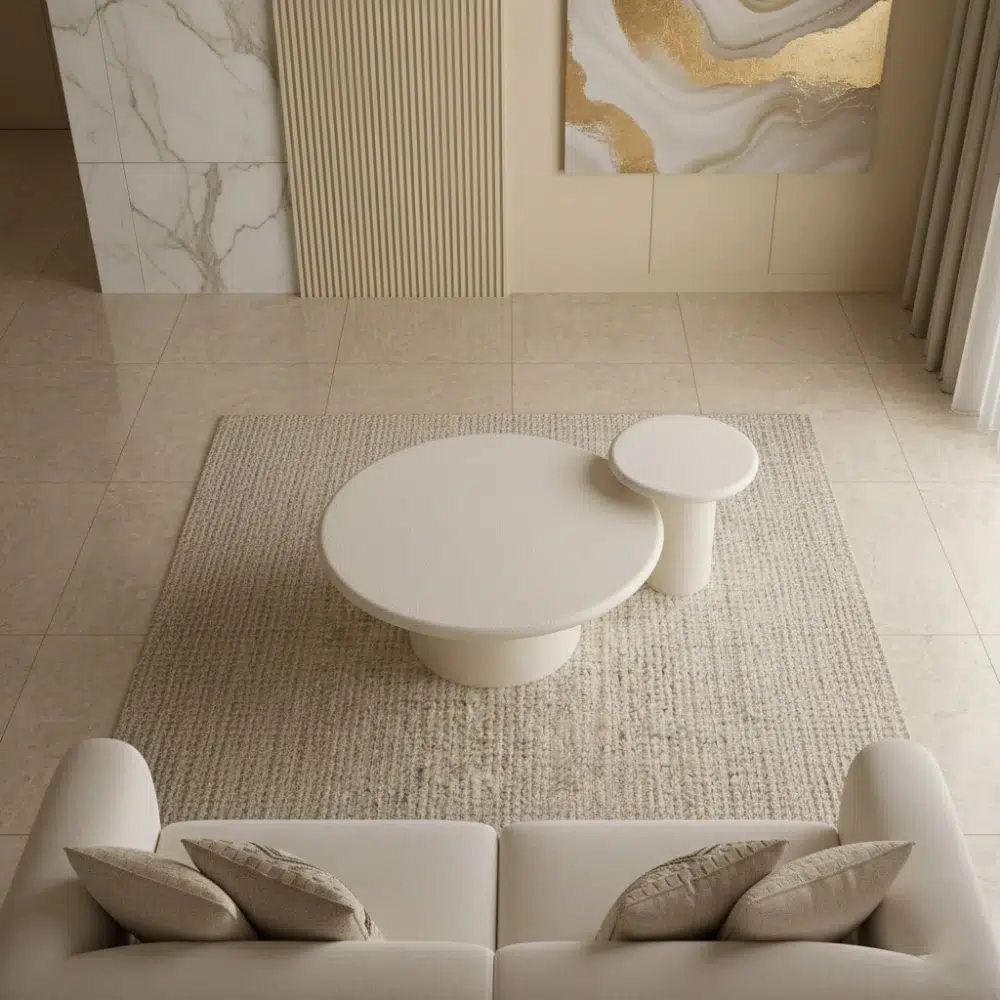 A modern 2-piece round coffee table set featuring smooth plaster-finish tops and sculptural pedestal bases. The Prime Coffee Table Duo adds balance, elegance, and versatile styling to luxury UAE living rooms.