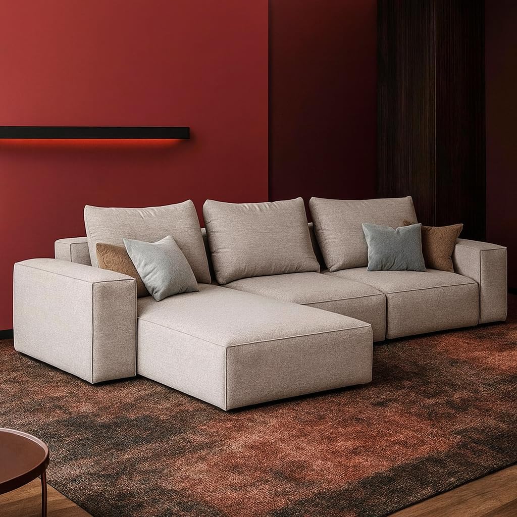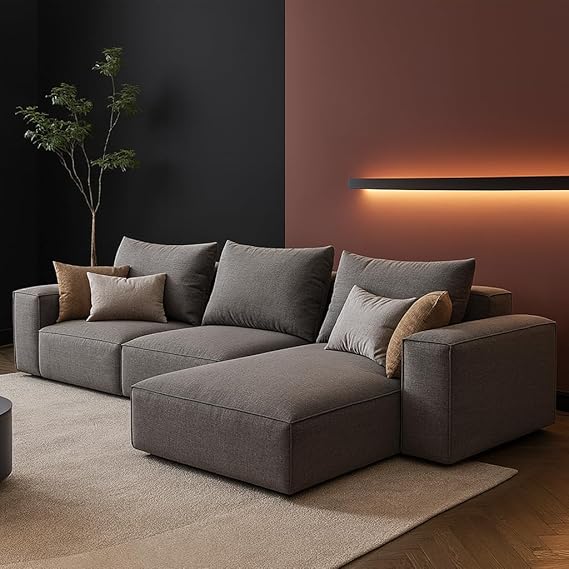 In addition, the 3 seater fabric sofa includes plush, high-density cushions for superior comfort. Whether you’re watching your favorite show, chatting with guests, or reading a book, it provides the right mix of support and softness. Furthermore, this 3 seater L-shaped piece’s modular layout allows easy arrangement to fit different room setups, making it both flexible and stylish.