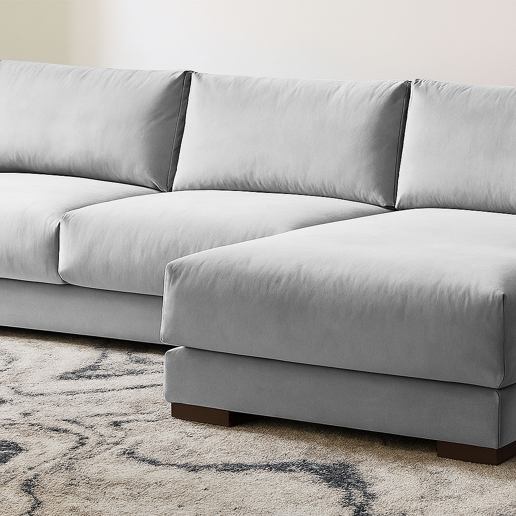Elevate your living space with the Rawcliffe 3 Seater L-Shape Velvet Sofa by Karnak Home. This L Shape beauty, complete with a chaise, offers unbeatable comfort with its fluffy cushions and premium fabric. Karnak Home provides free delivery across the UAE, along with the best offer on this sectional sofa. Redefine your homes comfort and style with the Premium Sofa Collection of Karnak Home.