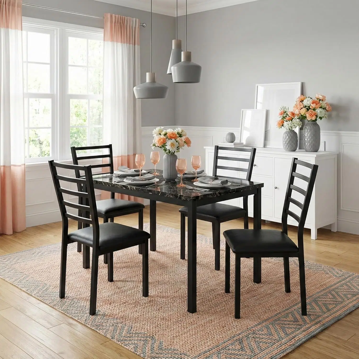 Consequently, the balanced size helps maximize seating without overcrowding the room. Furthermore, the design keeps the dining area organized and comfortable. As a result, the Rectangular Dining Set 5 Piece combines modern style with practical durability for everyday dining.