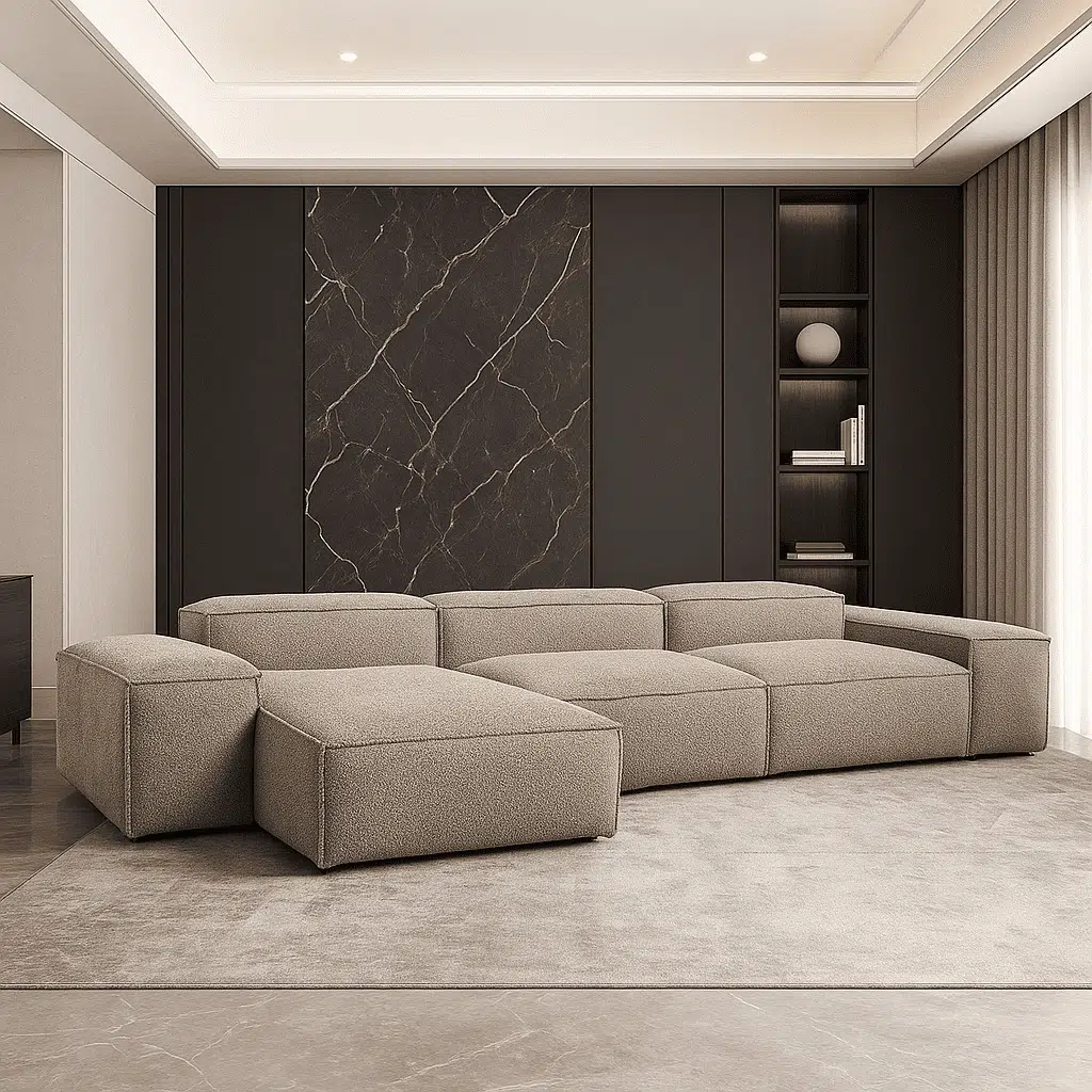 The Reem 3-Seater Boucl L-Shape Sofaoffers a perfect blend of comfort and contemporary style, making it a standout piece in any living room. Designed to be both inviting and functional, this sofa is ideal for those who value both aesthetics and relaxation.