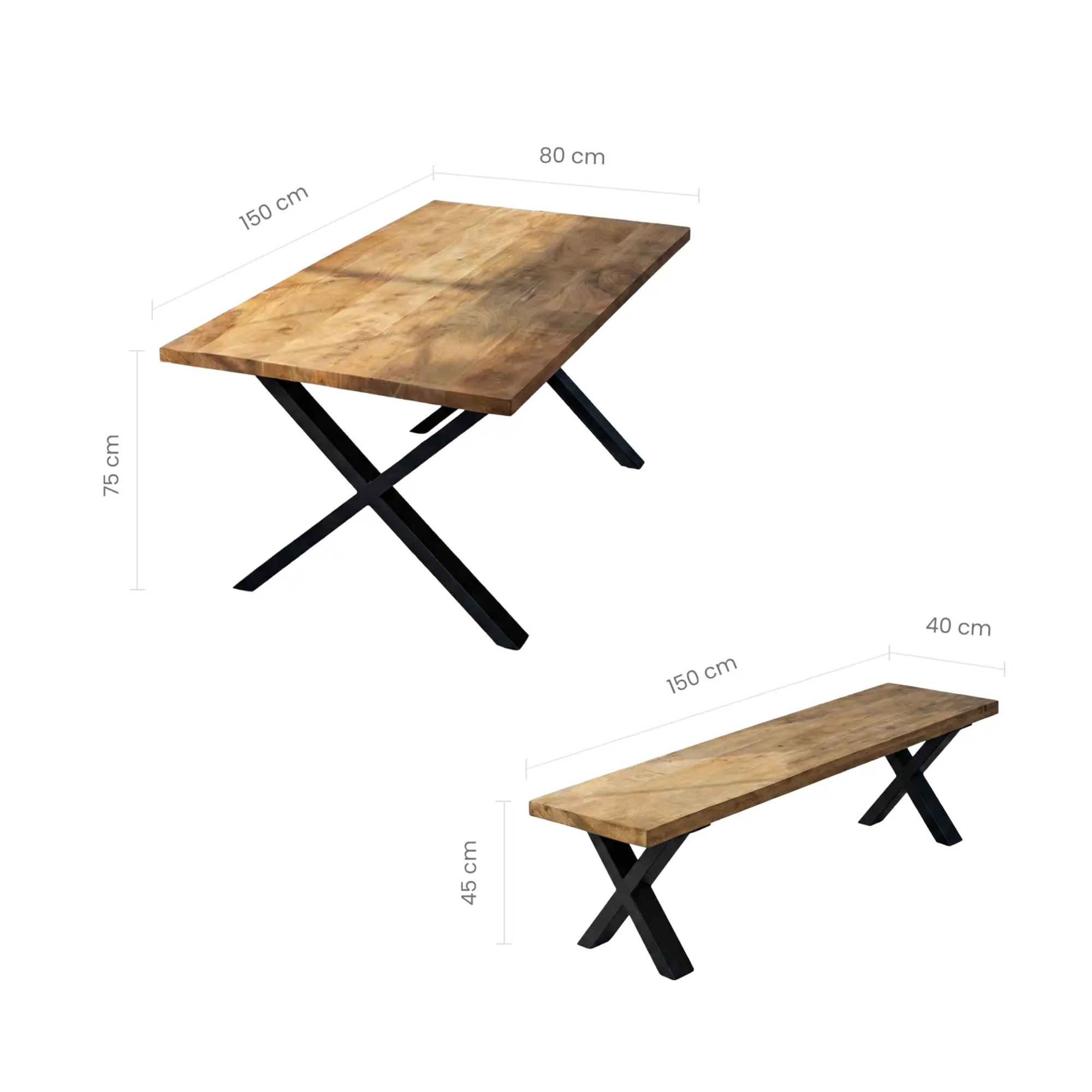 - Bench Size: 150 cm (W) x 40 cm (D) x 45 cm (H)