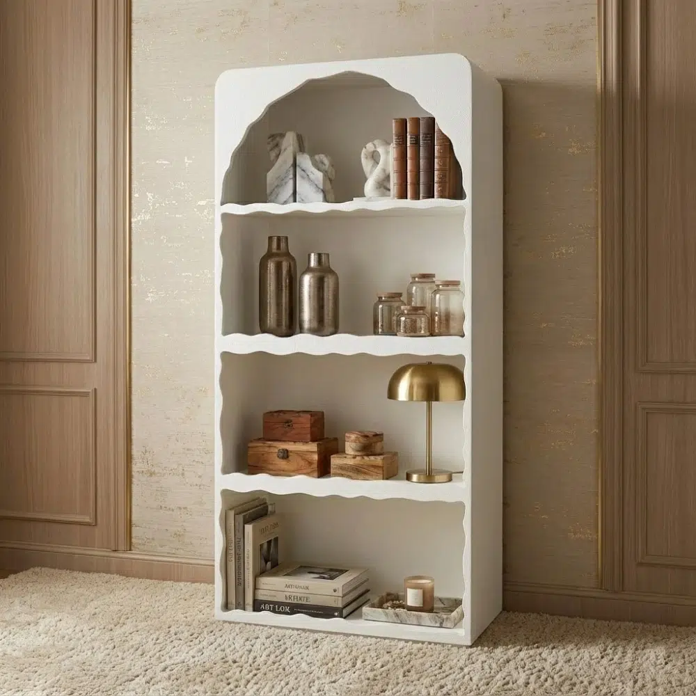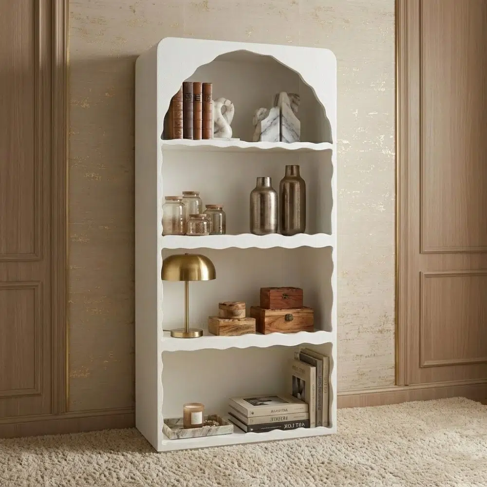 The Sahara Curve Display Unit brings a soft, sculptural elegance to modern UAE homes. Designed with organic wavy cut-outs and a gentle arched top, this display unit instantly elevates any room with a boutique, handcrafted feel. Its unique silhouette blends artistic design with everyday function—perfect for styling books, ceramics, candles, baskets, and statement décor.