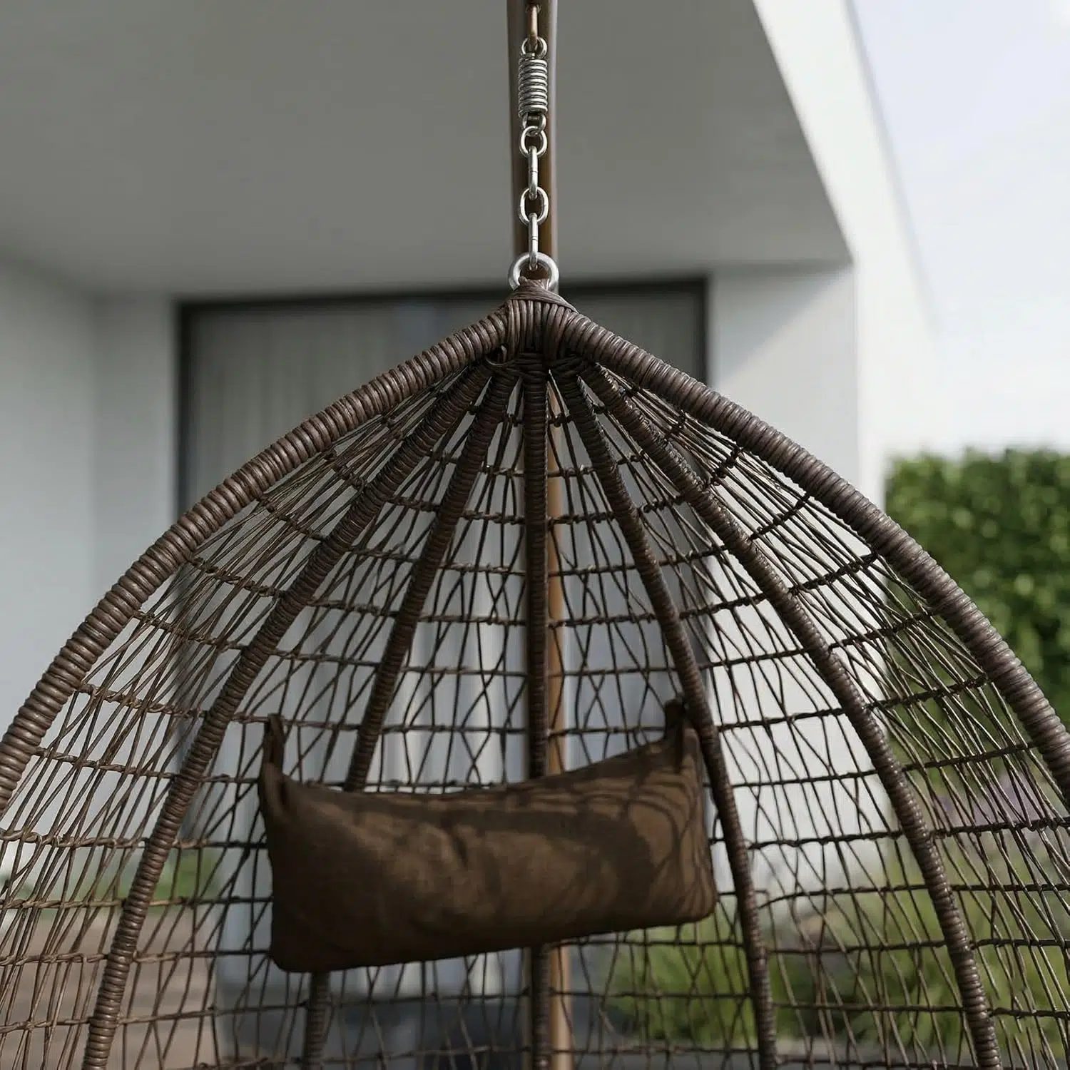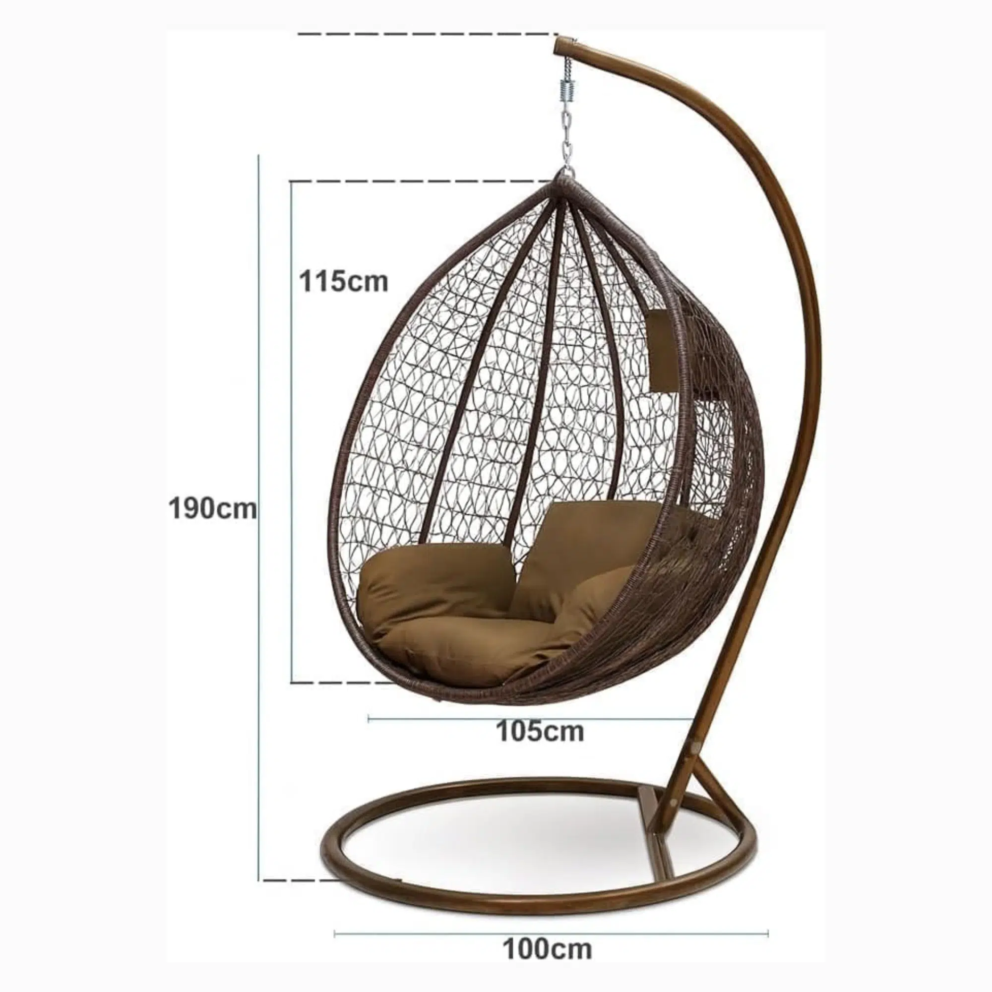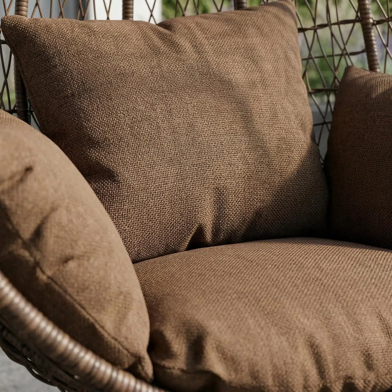Additionally, the chair includes soft cushions that provide support during extended use. The breathable filling enhances comfort while maintaining shape over time. Meanwhile, the sturdy stand allows the chair to hang securely, offering a gentle swinging motion for relaxation. The brown wicker-style finish complements natural and modern surroundings alike.