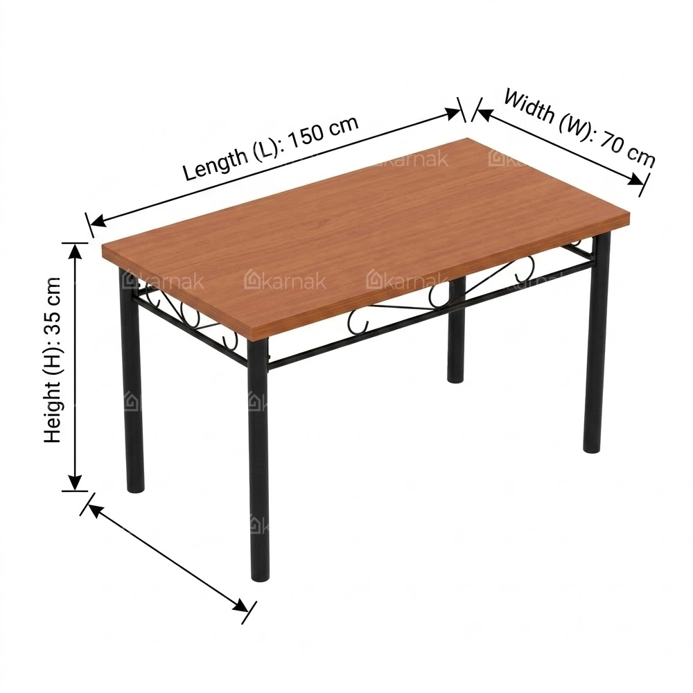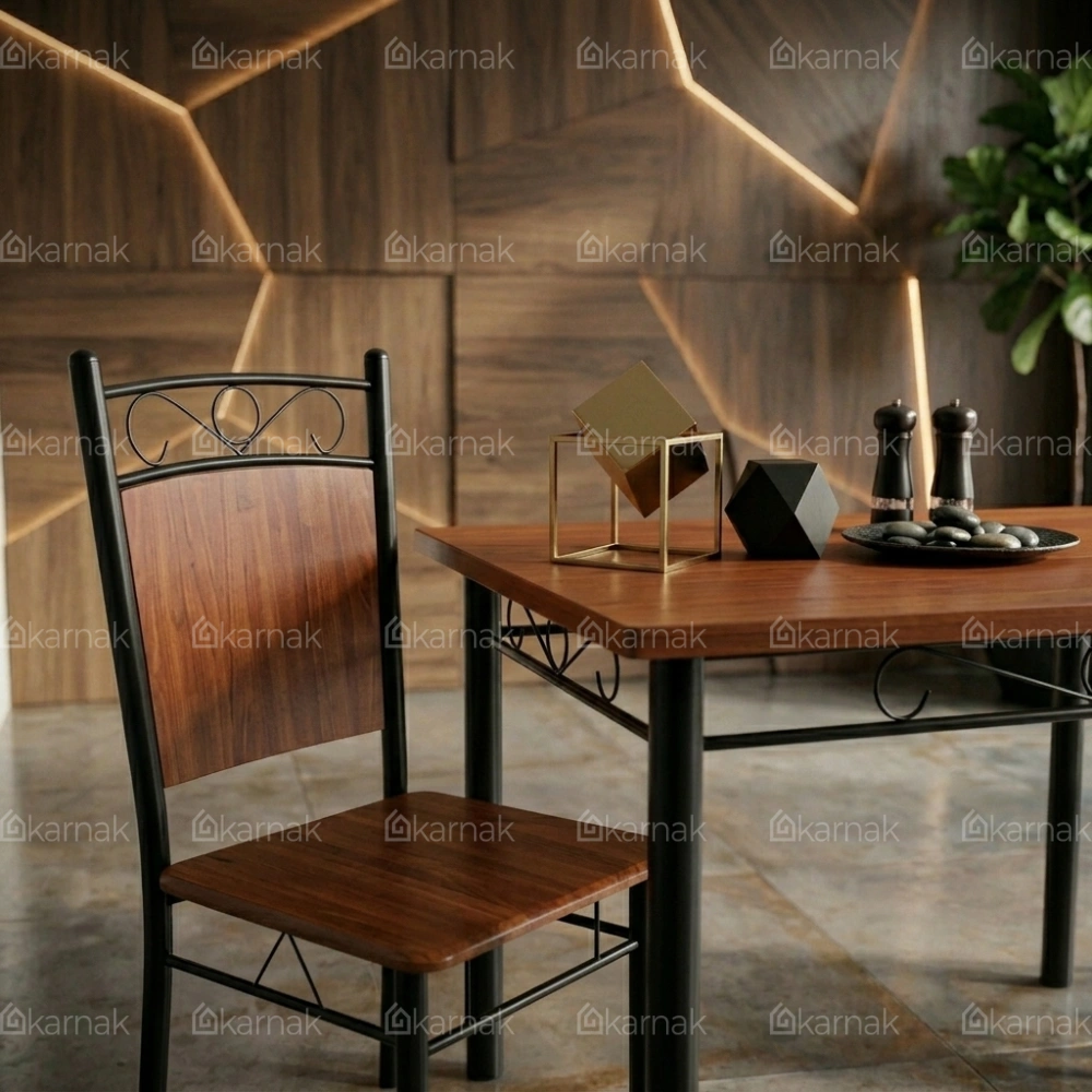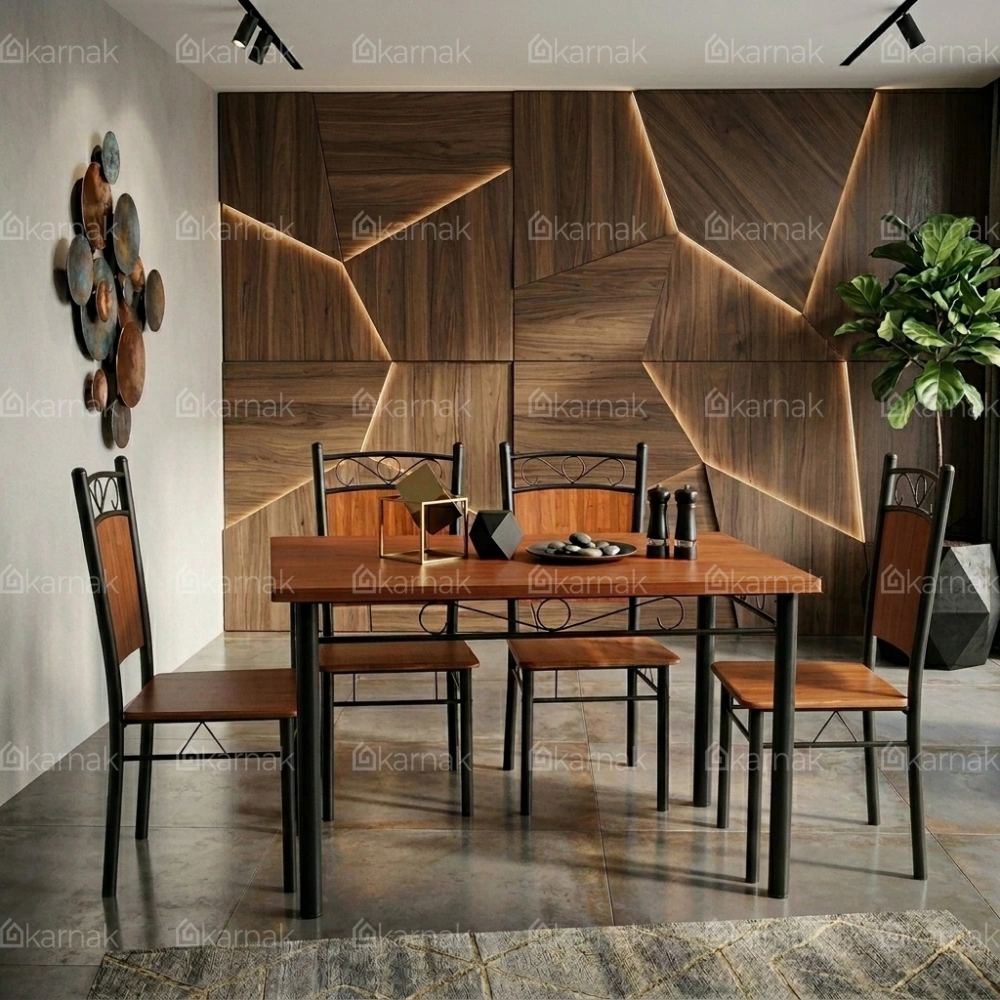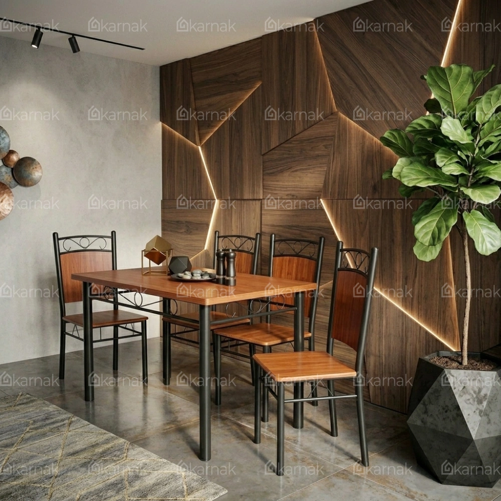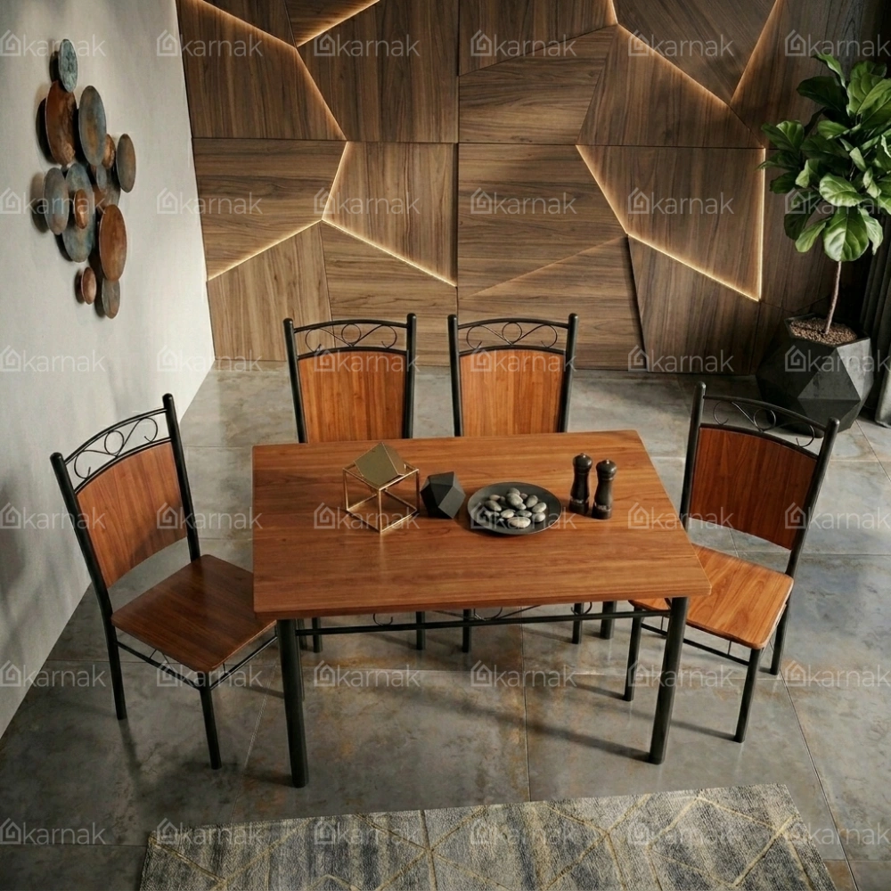 Overall, the Savoy 1+4 Wooden Steel Dining Table Set by Karnak Home presents a clean and balanced dining solution for modern interiors. The rectangular table design offers a practical layout for daily meals while maintaining a compact footprint. The wooden tabletop brings a warm and natural tone that blends easily with contemporary and minimal spaces. As a result, it fits well in apartments, dining corners, and open-plan areas.