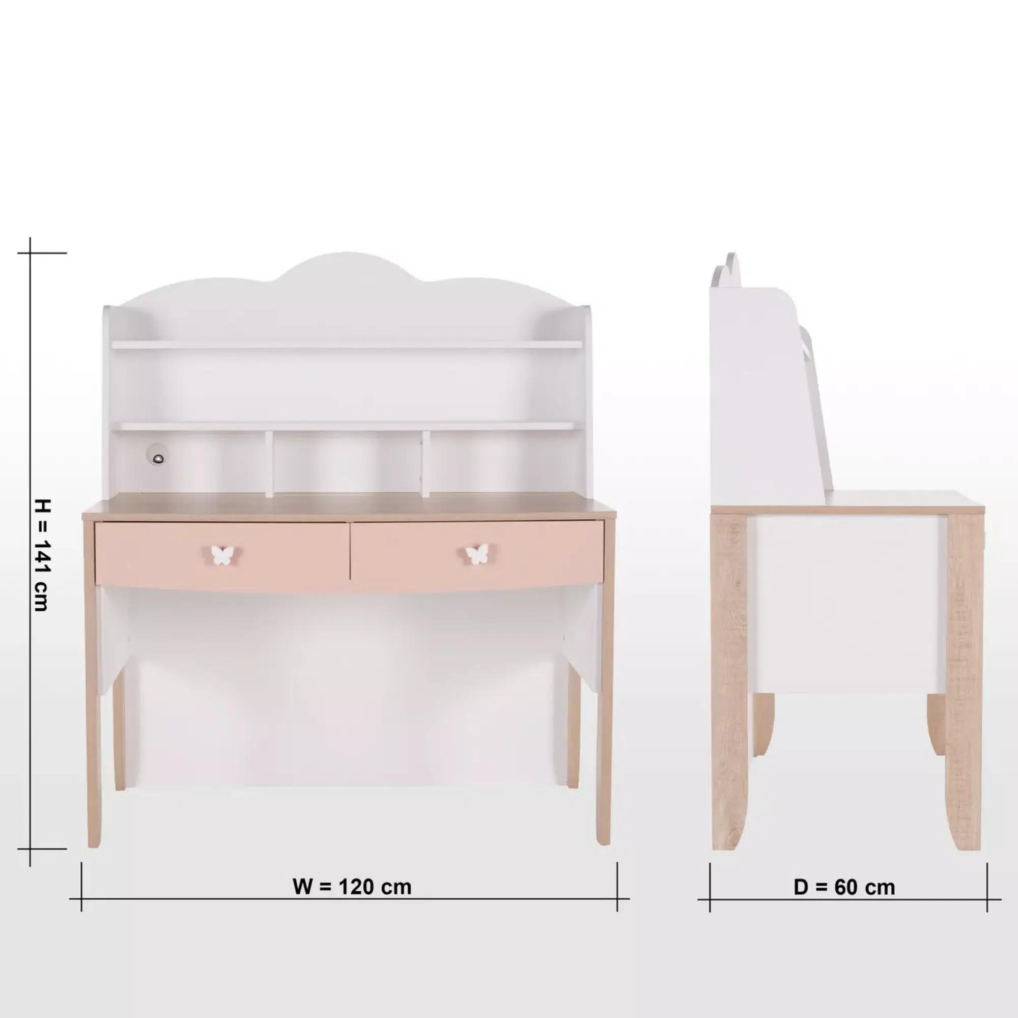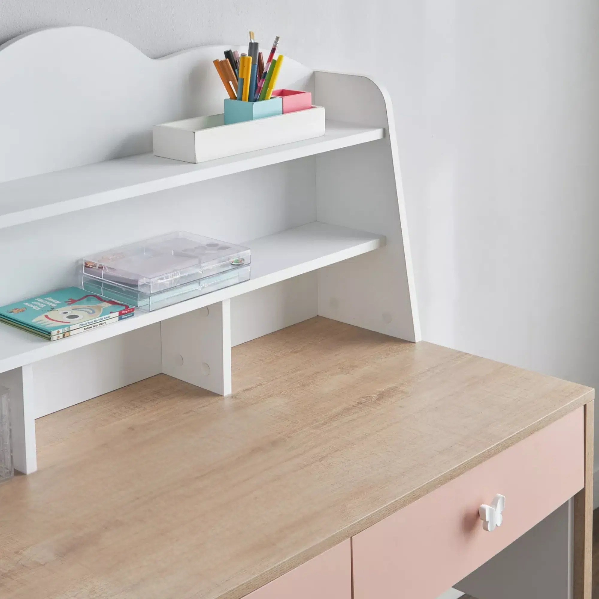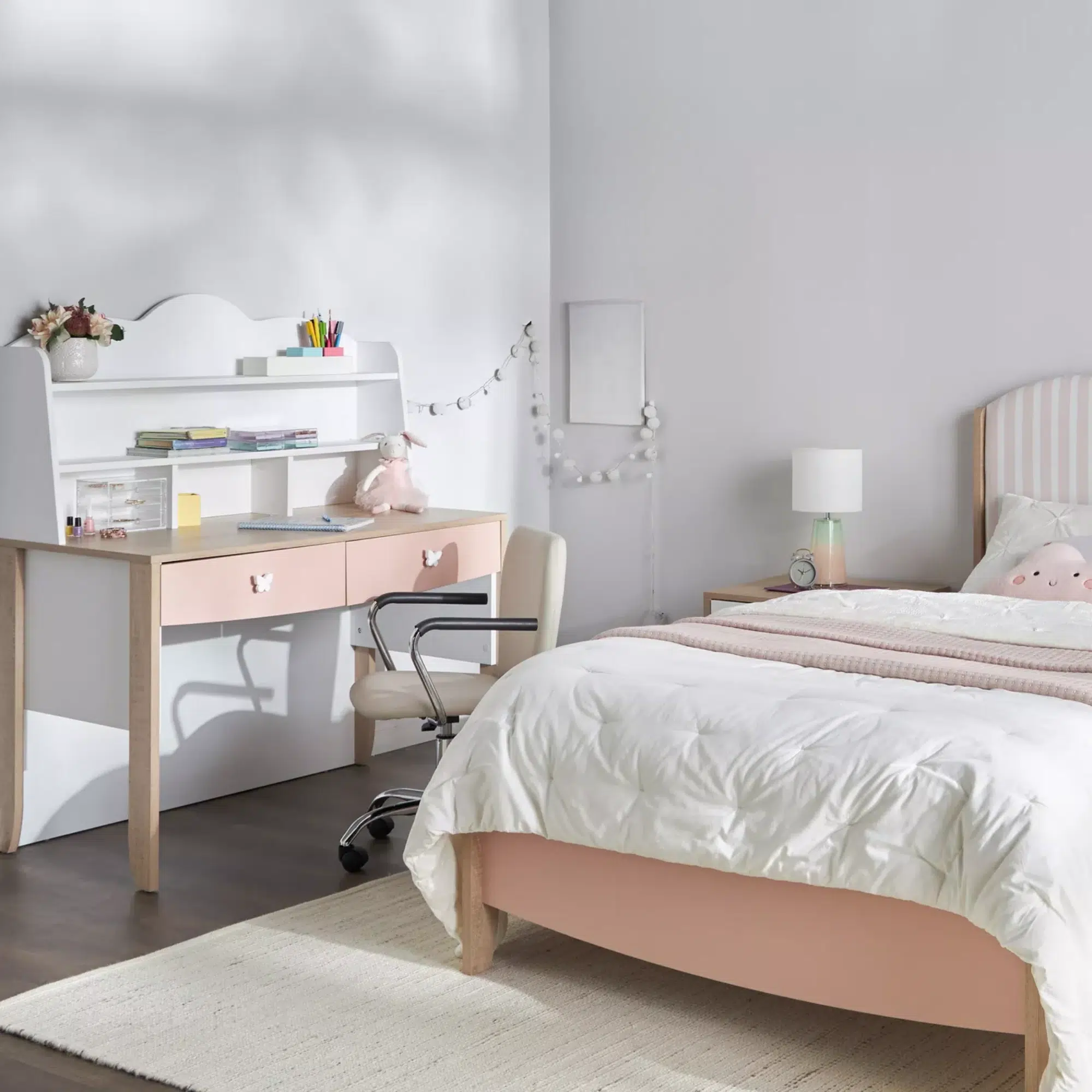 Additionally, the Seravelle Study Desk includes useful storage options that help maintain an organized workspace. The drawers allow children to store stationery, notebooks, and small study items. Meanwhile, the shelves provide extra space for books, study accessories, or decorative items.