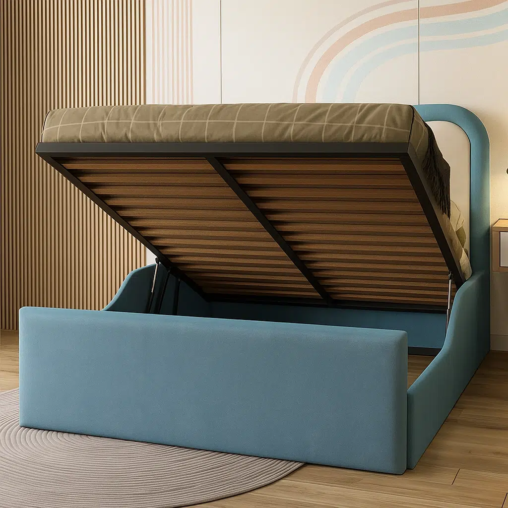 Many UAE families look for smarter ways to save space. Therefore, the Skyline Junior Kid Bed offers an optional ottoman storage base that keeps belongings hidden yet accessible. This practical solution helps you maintain a neat, organized, and modern bedroom.