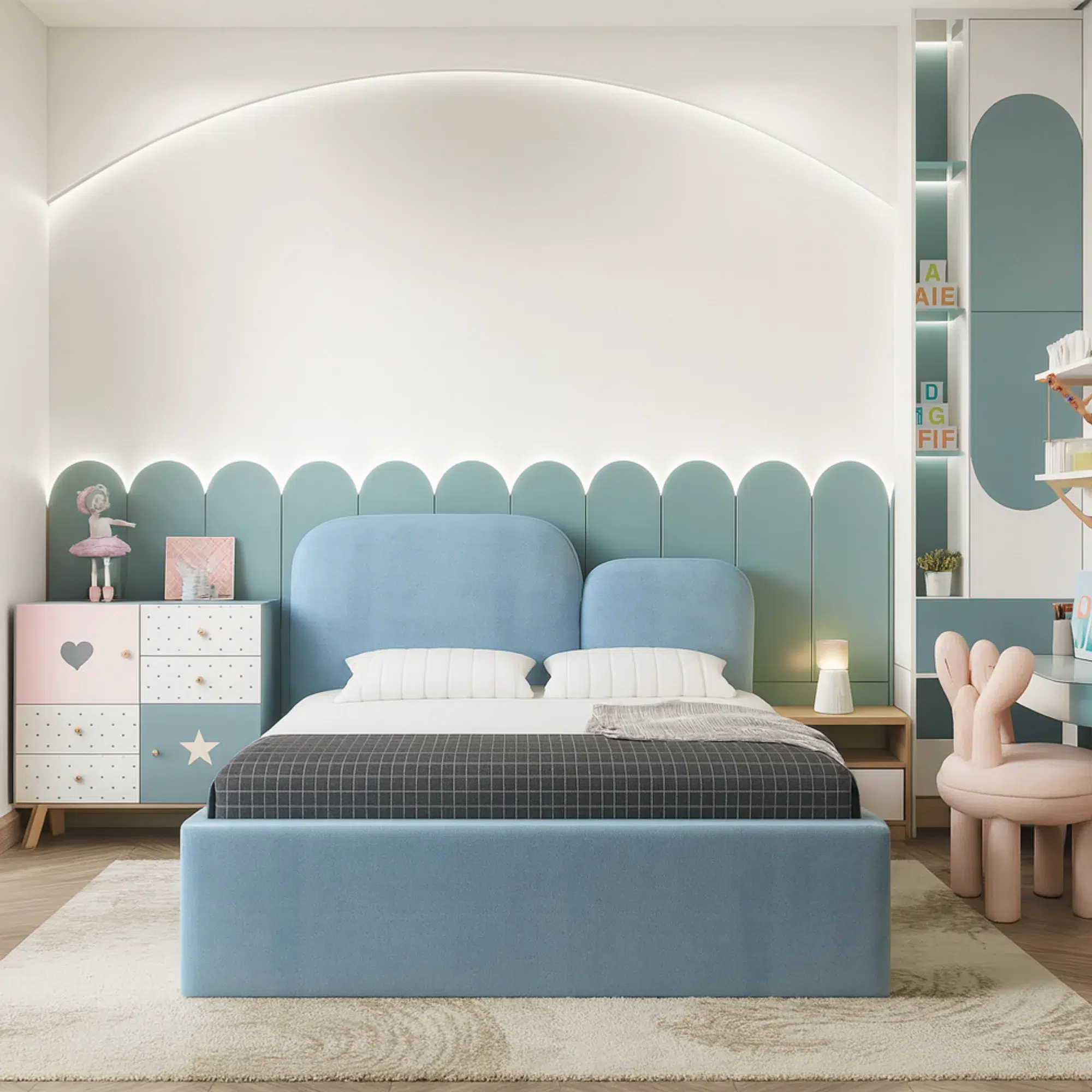 Create a room where your child feels safe, inspired, and excited every night. With this in mind, the Skyline Pure Tuft Kids Bed brings home a blend of UAE-made craftsmanship, comfort, and thoughtful design — all aimed at improving your child’s overall sleep experience.