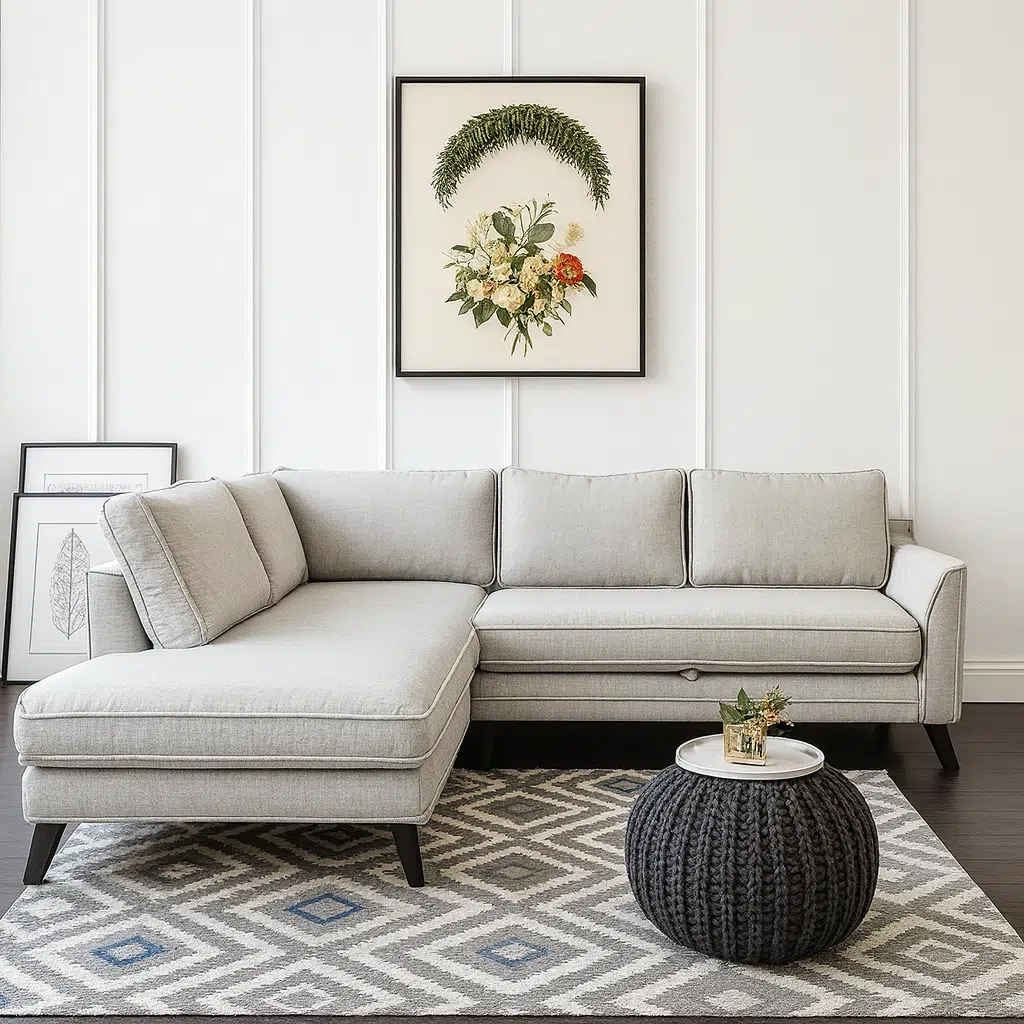 The Sofina L-Shape Sofa is crafted for homeowners who value elegant design, everyday comfort, and a warm, inviting living atmosphere. Upholstered in soft, skin-friendly fabric, this sofa delivers a smooth and comfortable seating feel that enhances the coziness of any modern home. Its refined silhouette blends beautifully with contemporary décor, while the spacious seating layout provides the perfect place for family relaxation, long conversations, or casual lounging.
