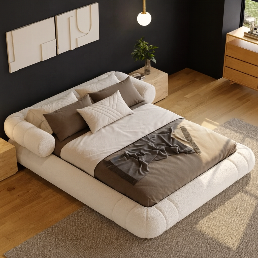 Elevate your bedroom with the SOFRA Bed, a beautifully crafted piece that merges simplicity with luxury. Upholstered in premium boucle fabric, this bed delivers both texture and elegance, bringing a soft yet modern touch to any interior. Designed for contemporary homes across the UAE, the SOFRA Bed blends comfort, durability, and customizable beauty.
