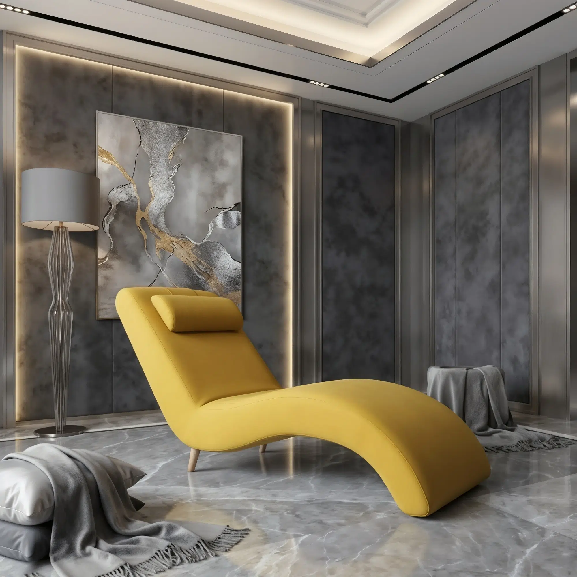 Designed for both visual impact and everyday comfort, this chaise lounge is ideal for living rooms, bedrooms, luxury villas, hotel suites, wellness rooms, and designer lounges. Its contoured shape supports the body naturally, making it perfect for relaxing, reading, or unwinding in style within the UAE luxury furniture market.
