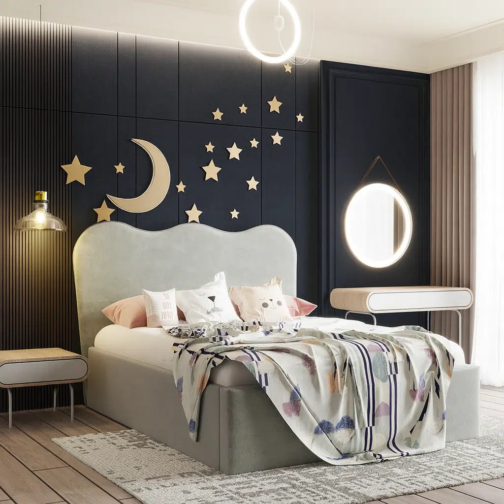For extra convenience, you can add optional ottoman storage. This feature helps organize toys, bedding, or seasonal items, especially in smaller rooms. With more than 100 fabrics and color options, plus made-to-measure sizing, the StarrySky Kids Bed can match your child’s personality and your home’s style. Therefore, it becomes a perfect centerpiece for a dreamy, practical, and well-designed bedroom.