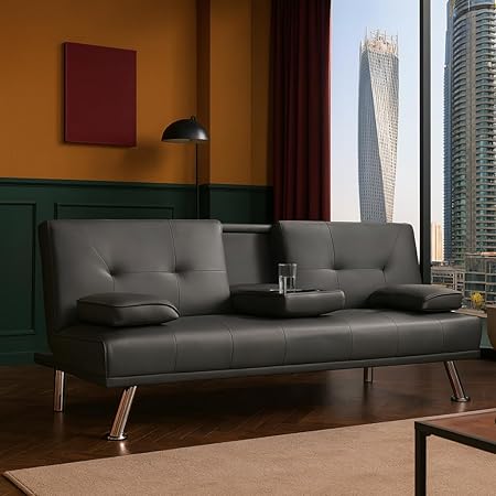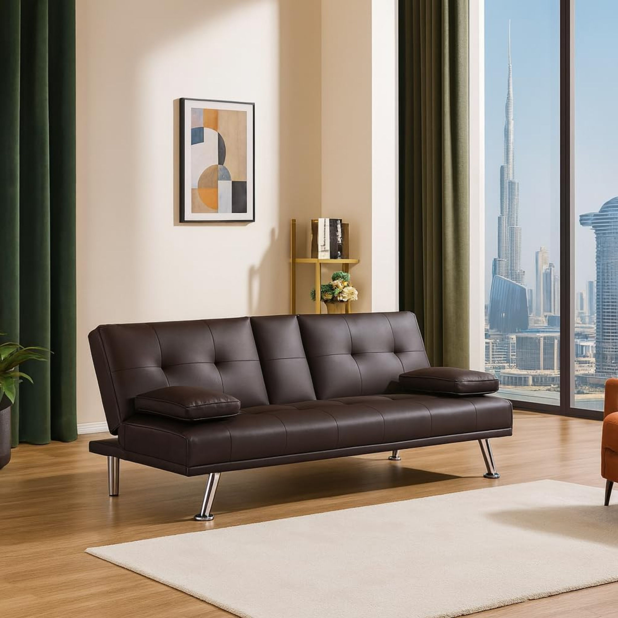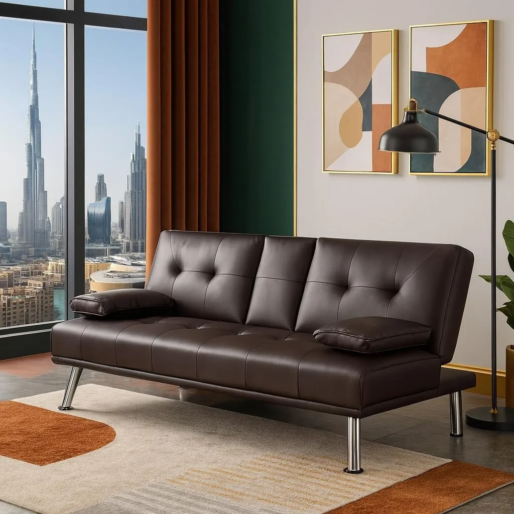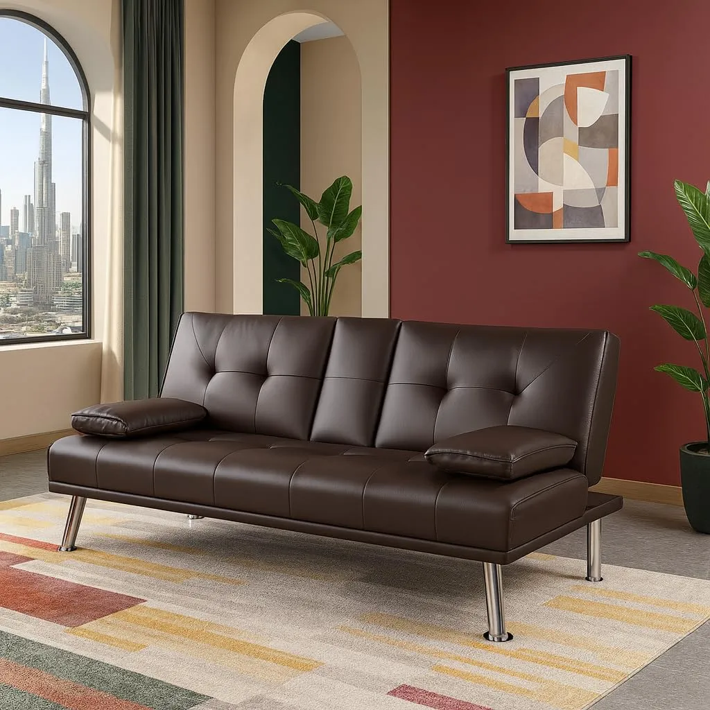 Upgrade your home with the Strandom 2-Seater Leather Futon Sofa Bed, a smart mix of comfort and function. It is ideal for small homes, studios, and guest rooms. Moreover, the smooth faux leather gives it a neat look and is easy to clean. The strong frame and soft surface make it both durable and comfortable for daily use.