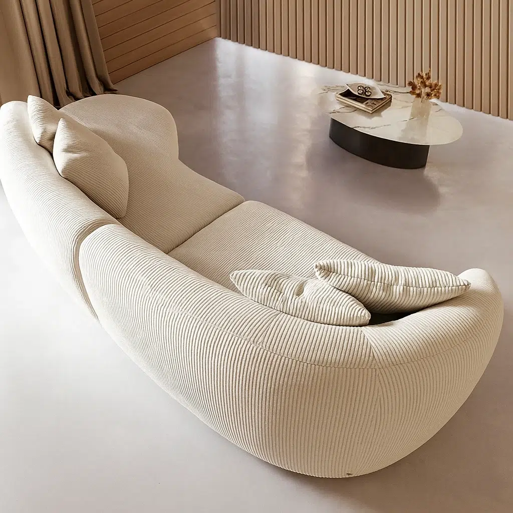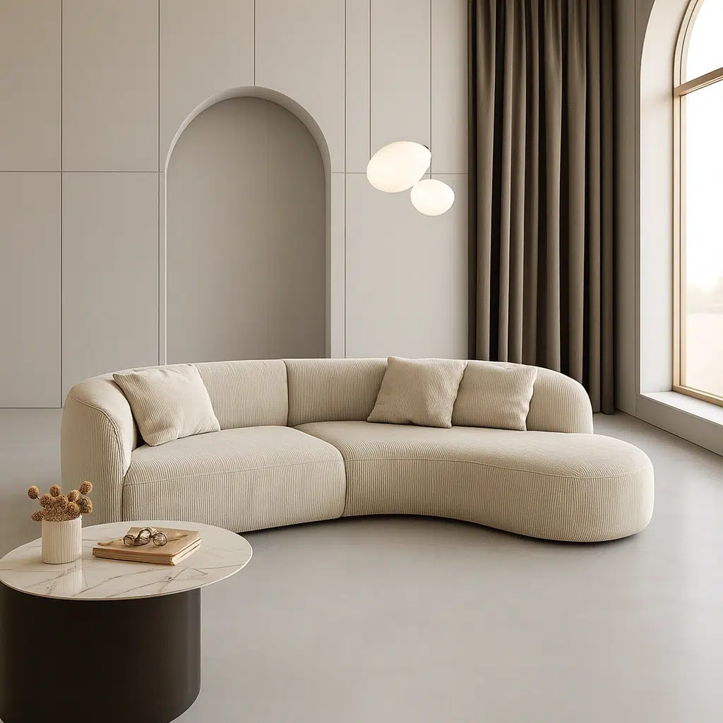 The Swayline Curve Sofa brings sculptural elegance and luxurious comfort to any modern living room. Designed with a smooth, organic silhouette, it creates a soft, welcoming presence that instantly elevates your interior aesthetic. Upholstered in high-quality, premium fabric, the Swayline offers a gentle, skin-friendly texture that enhances relaxation. Its deep, comfortable seating makes it perfect for quiet evenings, casual gatherings, or adding a bold designer touch to your living space. The graceful curve of the sofa adds flow and harmony, making it an eye-catching centerpiece in contemporary homes.