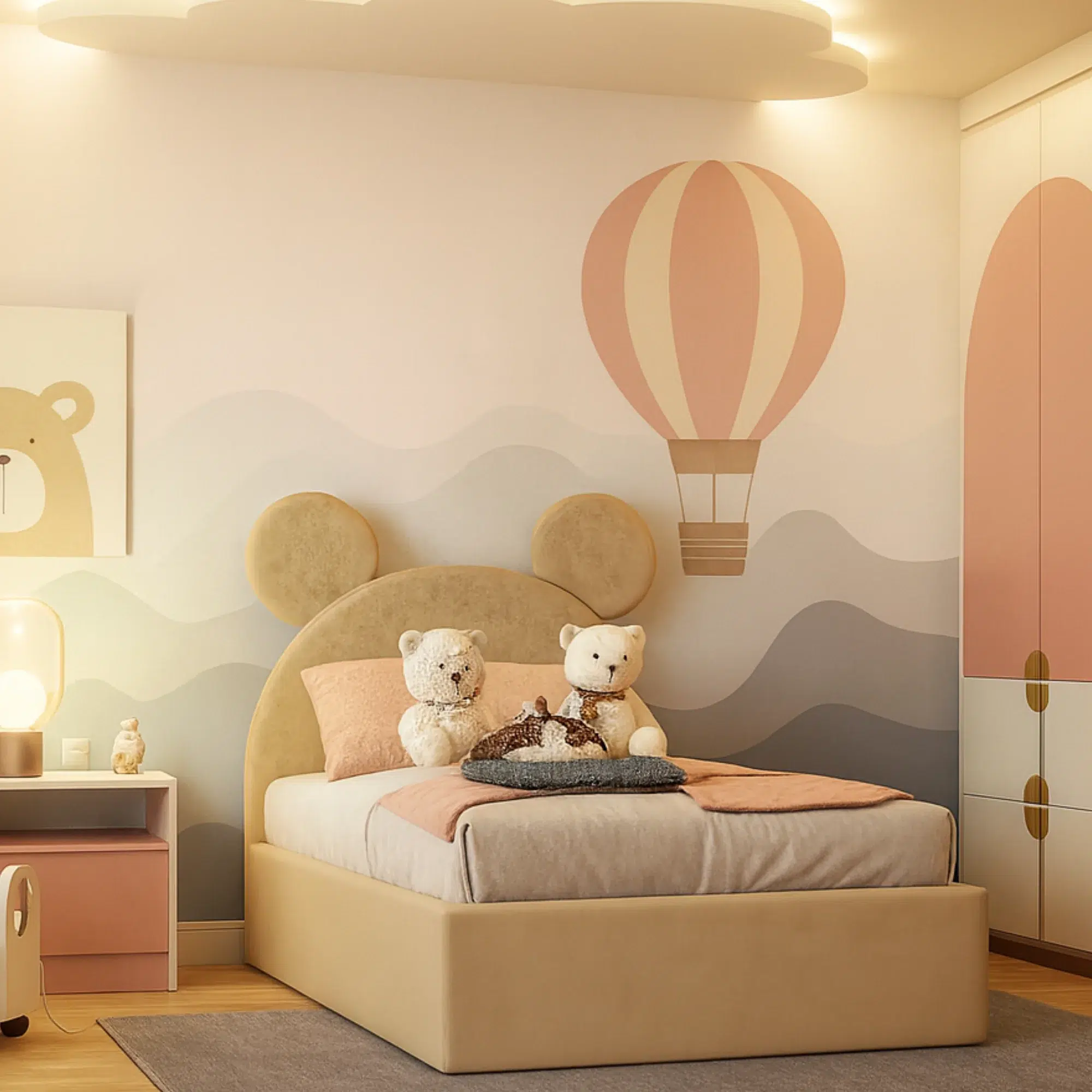 A playful Teddy ear kids’ bed that adds charm, comfort, and style to any bedroom. Customisable colours make it the perfect centrepiece for your child’s room.