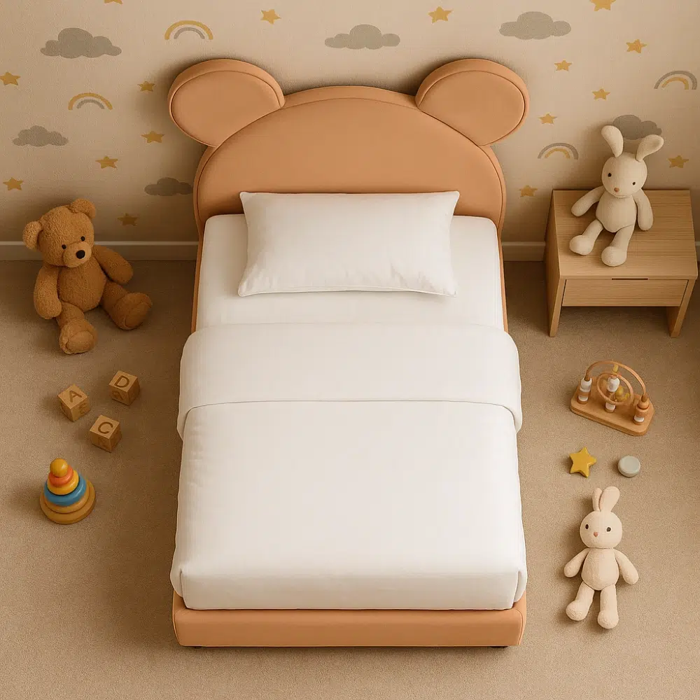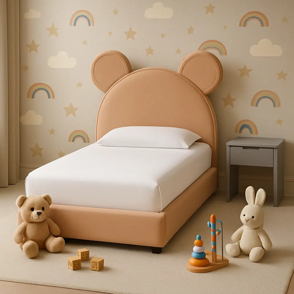 Design: Rounded teddy-bear ear padded headboard, soft cushioned edges
