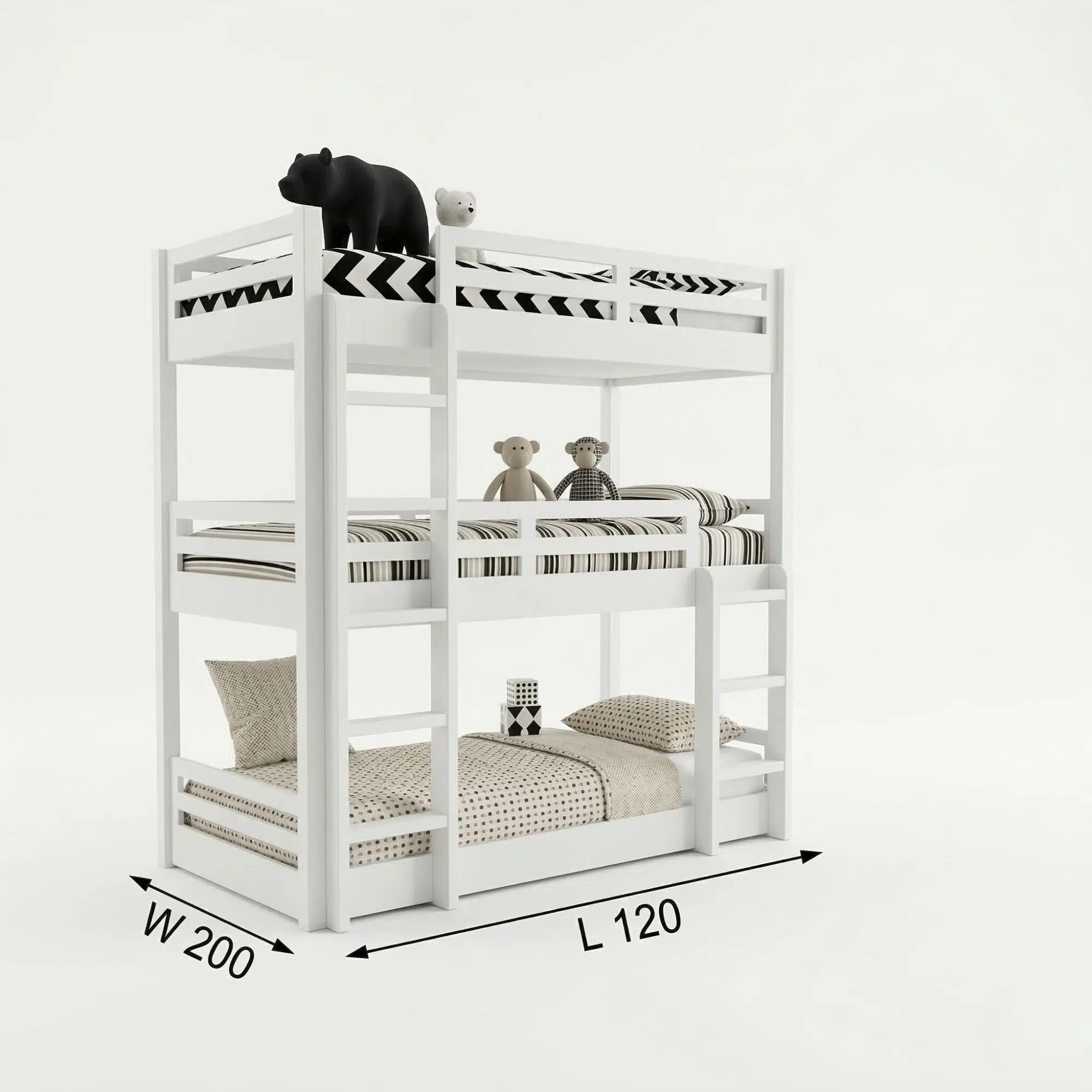 Triple Toddler White Bunk Bed