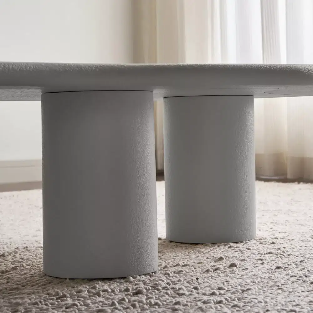 The Valencia Luxe Coffee Table blends sculptural elegance with modern minimalism, offering a stunning centerpiece for sophisticated UAE interiors. Designed with a flowing organic top inspired by natural contours, it brings softness and movement into any living room. The cloud-like silhouette is complemented by three cylindrical pedestal bases, creating perfect balance, symmetry, and stability while maintaining a striking designer presence.