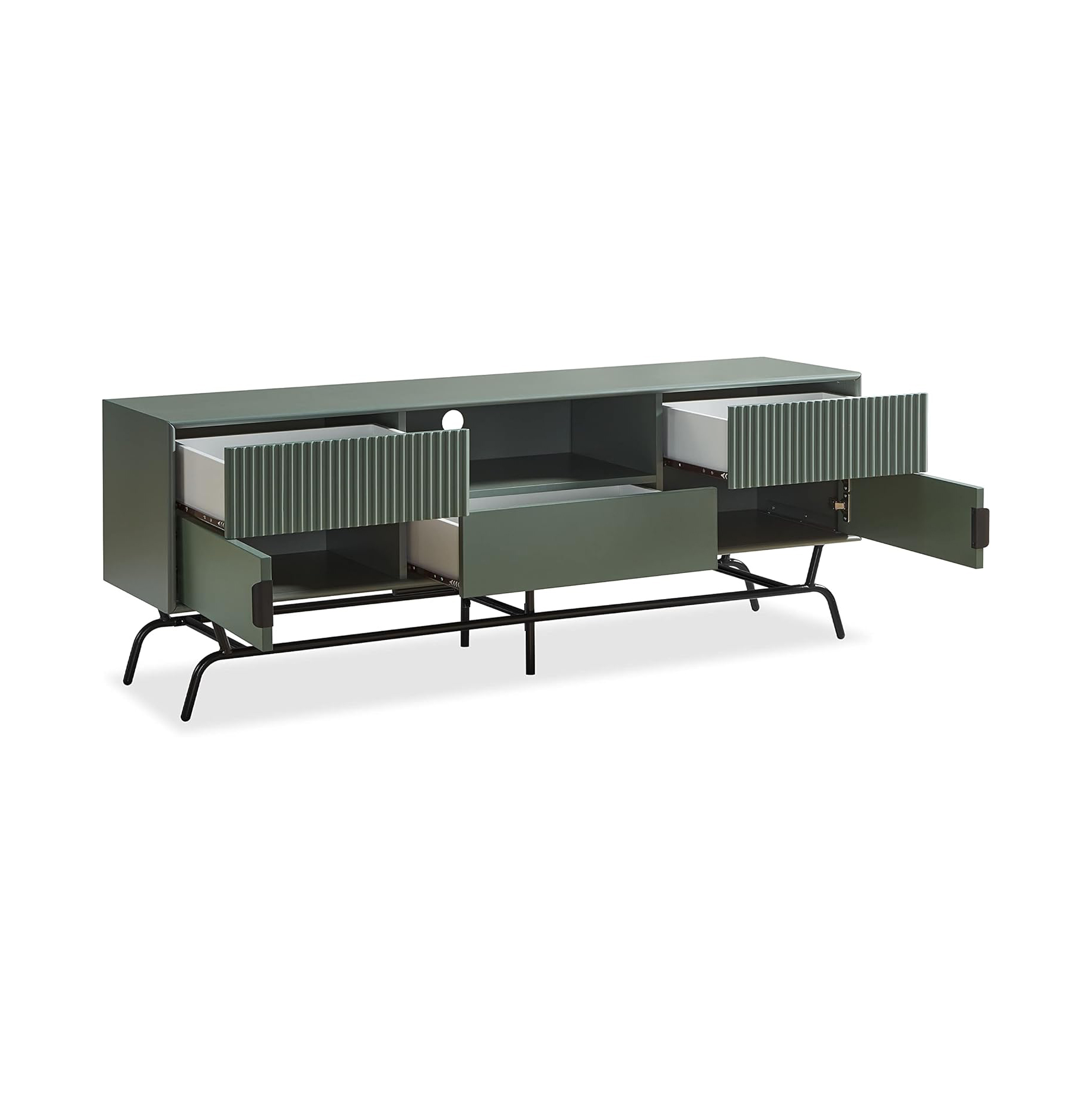 This is more than just a TV stand—it’s a versatile furniture piece. Furthermore, the three drawers provide flexibility for organization. In addition, the surface top allows space for TVs, décor, and media essentials.