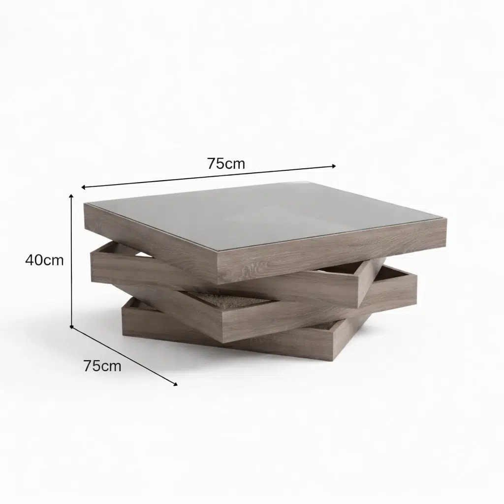 The Vorta modern centre table is a bold statement piece for contemporary living spaces. With its artistically angled block structure, this modern centre table adds sculptural depth and character. Moreover, the distinctive four-level design creates strong visual interest. As a result, the table becomes a natural focal point in modern interiors.