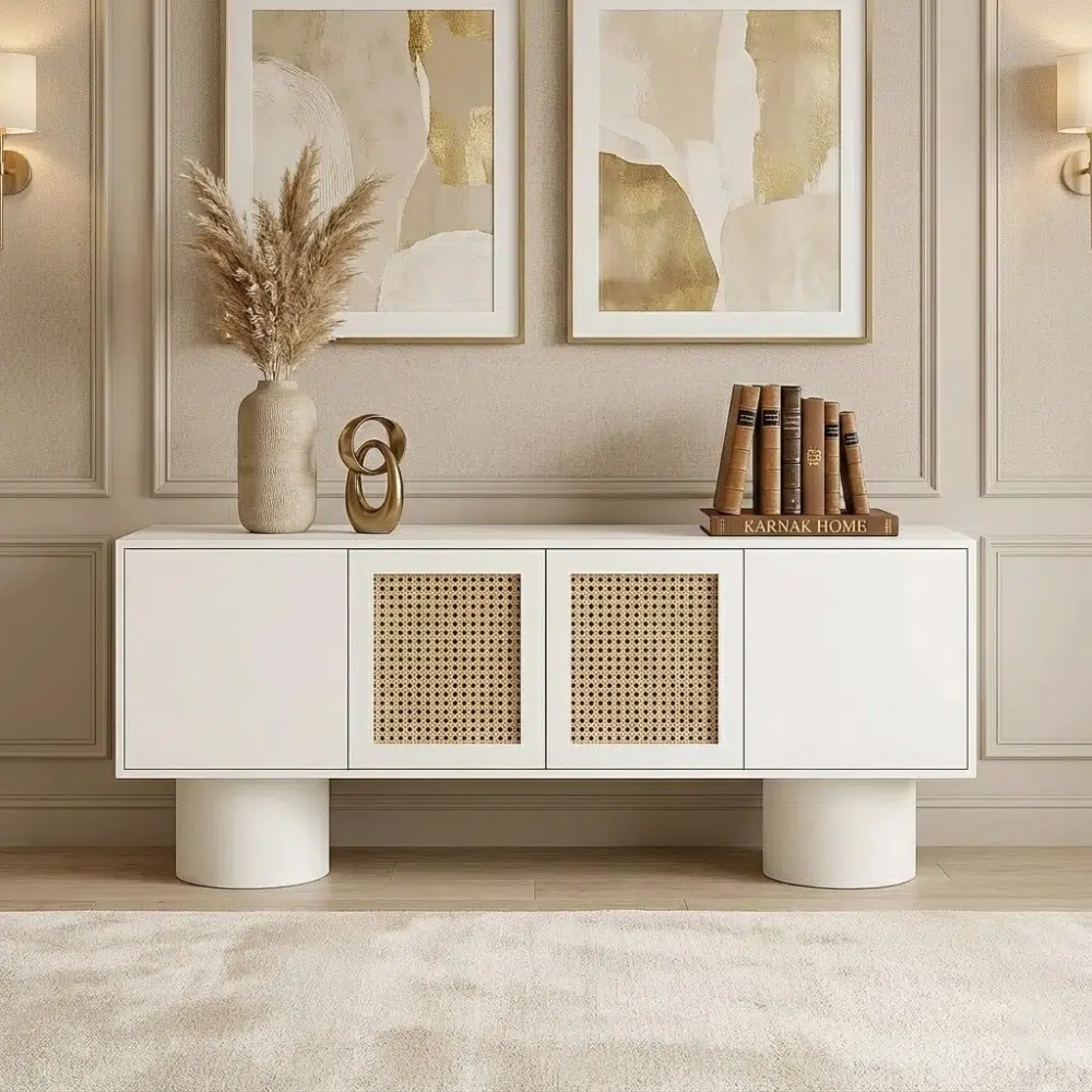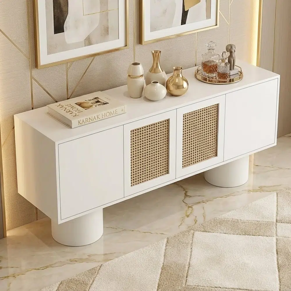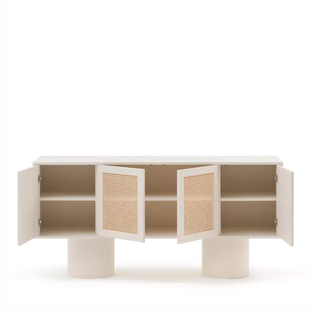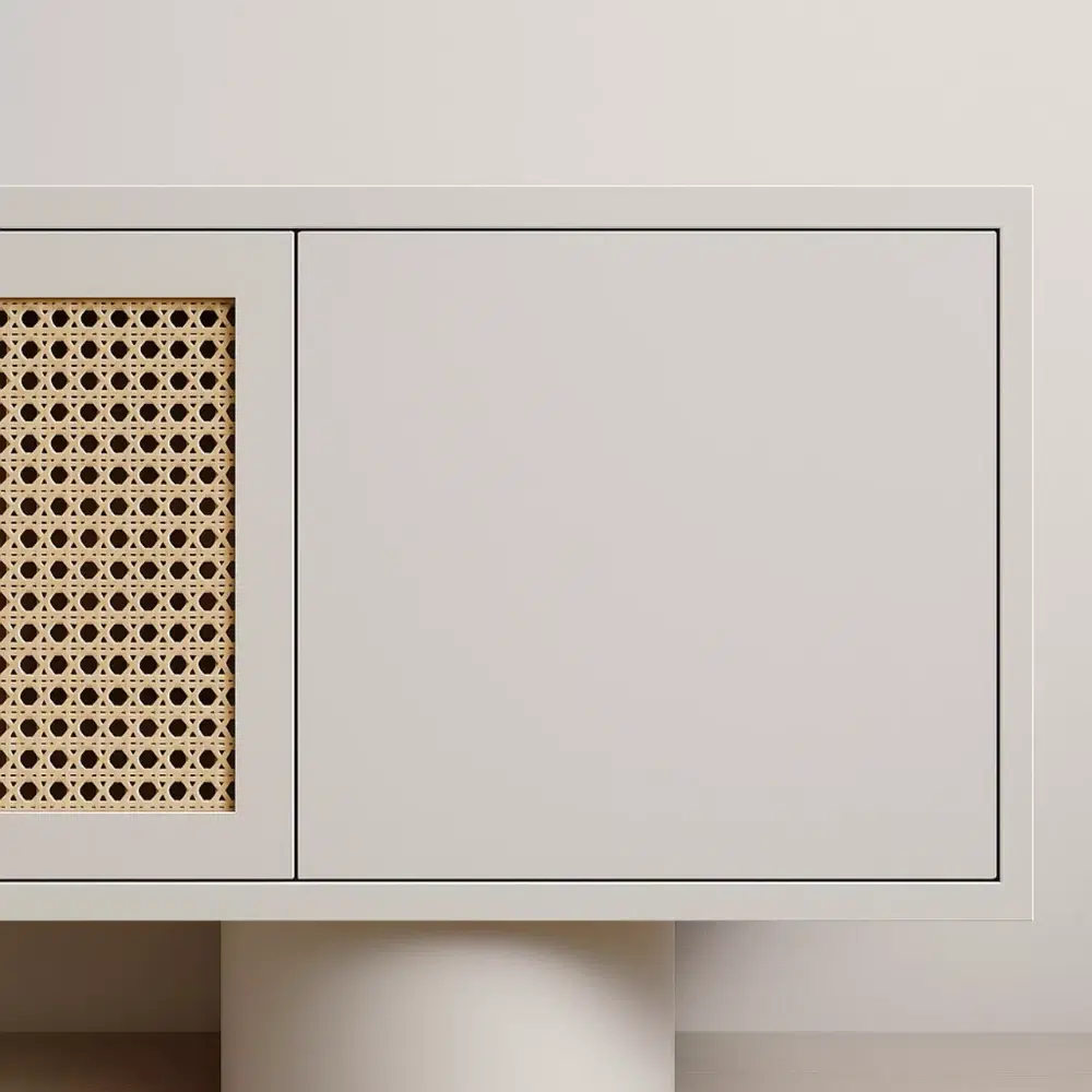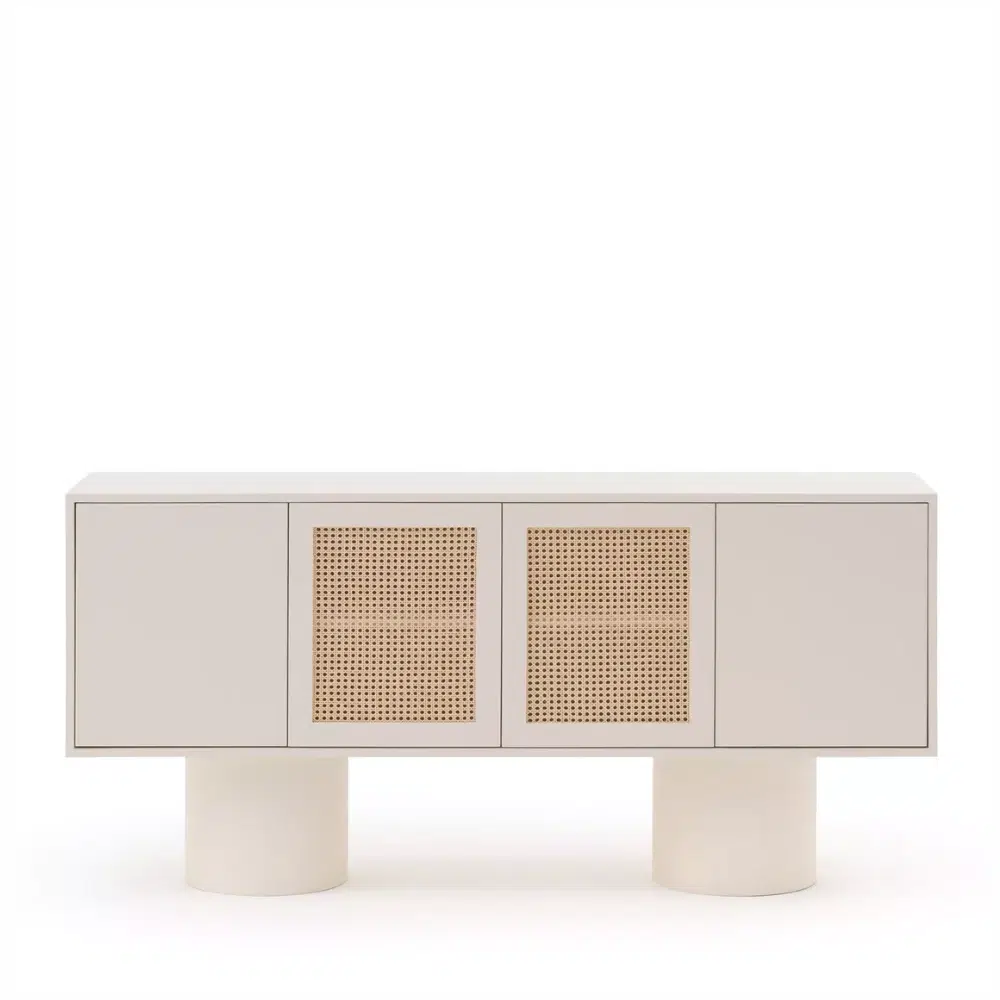 Zayna Modern Buffet | Plaster-Finish Sideboard with Cane Doors