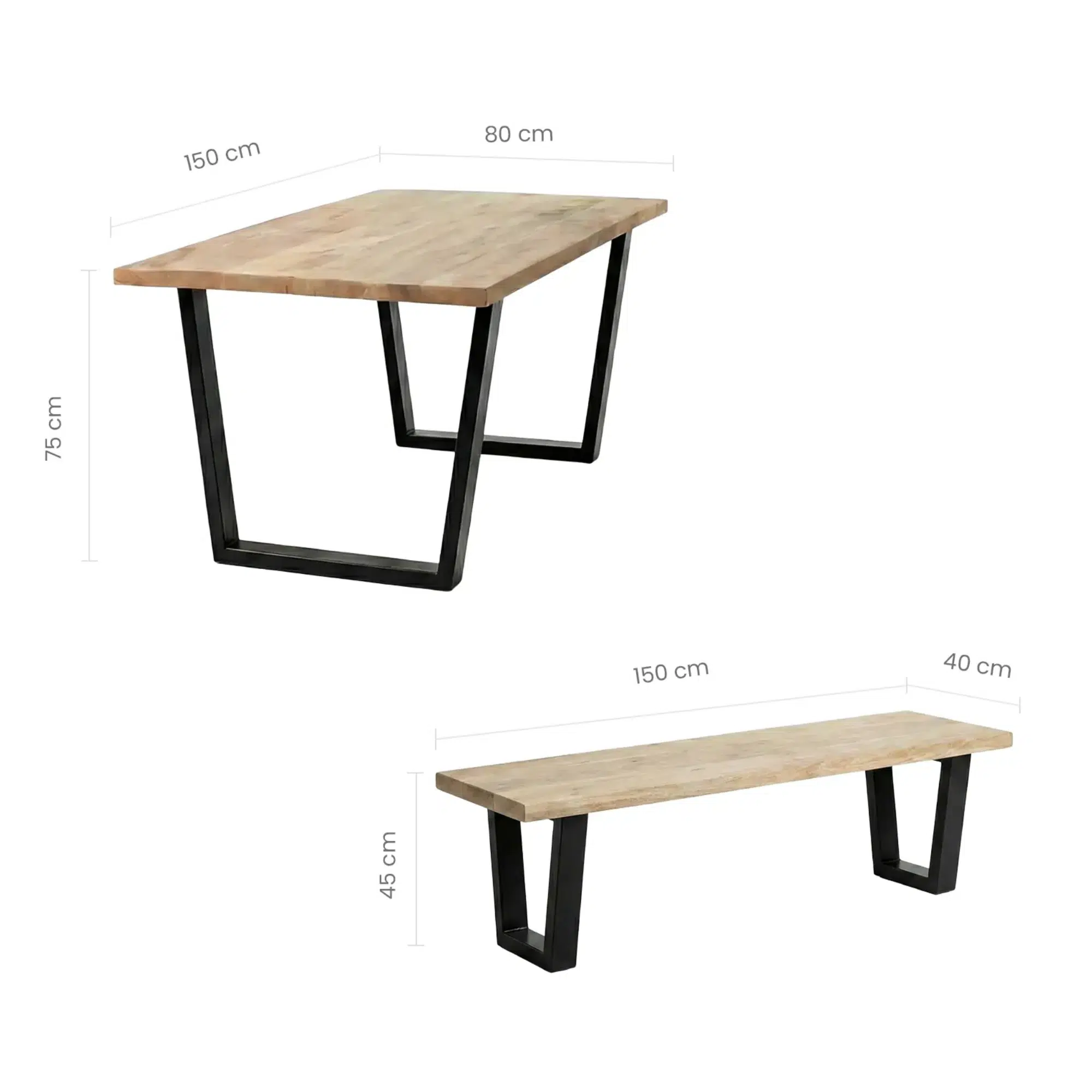 - Bench Size: 150 cm (W) x 40 cm (D) x 45 cm (H)
